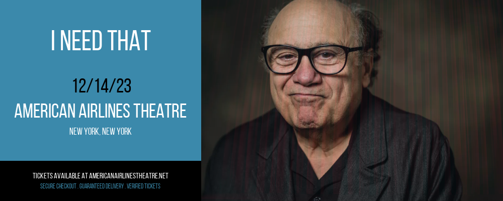 Broadway fans have just had the best news for winter, 2023! The breathtaking, I Need That is touring once more and tickets are selling so fast! Critics cant get enough of this spectacular, the world class cast, incredible effects let alone the choreography and tunes, you'll be in your element! I Need That wile give you the Thursday of all Thursdays this December, along at the best theatre in the city, if you didn't already know the breathtaking American Airlines Theatre of New York, New York on Thursday 14th December 2023. American Airlines Theatre is known as the most capable venue of its kind for broadway productions, with excellent facilities, great service and some tasty food joints, its perfect for the night. I Need That is great for the whole family, so how about bring the whole clan? If you want tickets, do so asap, its bound to be the best evening of the year. You can purchase direct from here, simply press on the 'get tickets' button and buy yours today, I Need That is going to be SO busy!