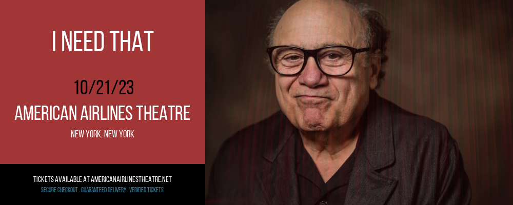 Awe-inspiring entertainment is coming to you this season but only if you book your tickets today while supplies last. Because right now, tickets are ready to order for I Need That live at American Airlines Theatre in New York, New York on Saturday 21st October 2023. This is your best chance to catch the best that Broadway has to offer, anywhere near your neighborhood. With breathtaking visuals designed by the industry’s biggest visionaries and thrilling performances by the best of the best around, you can trust that I Need That will be a spectacular event. Even now, critics are eagerly awaiting what may be the fall’s best-selling Broadway production to ever come to New York this October. But if you don’t want to miss out then you have to act fast. Because tickets are on sale today, but they won’t last long. Beat the rush and Tap the buy tickets button below, so you can order your tickets to experience I Need That live at American Airlines Theatre in New York, New York this coming Saturday 21st October 2023!